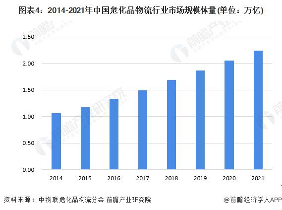然而这种背景的另一边,却是我国公路运输市场从2014年开始连续多年的增长。根据中国物流与采购联合会公布的数据,截止2021年底我国公路运输市场已达6万亿规模,其中危化品物流运输占据2.24万亿,且预计到今年年底将增长至2.43万亿。